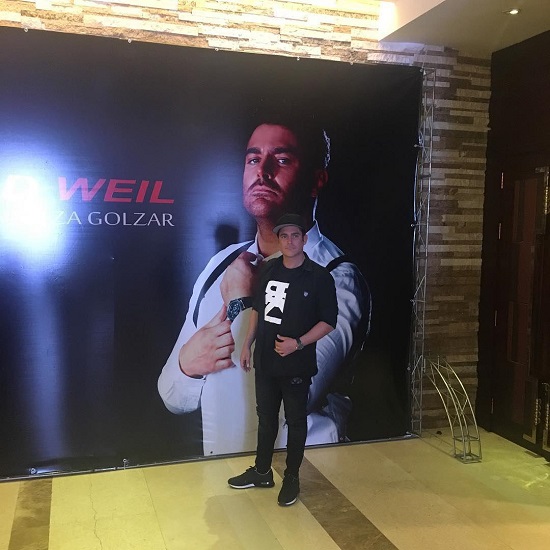 محمد رضا گلزار در کنار پوستر بزرگ خود +عکس