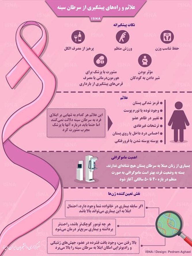 روزنو :اکتبر، ماه کارزار بینالمللی برای افزایش آگاهیها پیرامون سرطان پستان در سراسر جهان است. این نوع سرطان از گستردهترین انواع سرطانها در میان زنان است؛ با این حال، ابتلا به آن به معنای در انتظار مرگ نشستن نیست، بلکه تشخیص به موقع بیماری، شاهکلید نجات جان بیمار است. در این اینفوگرافی با علائم و راههای پیشگیری و درمان این نوع سرطان آشنا میشوید.