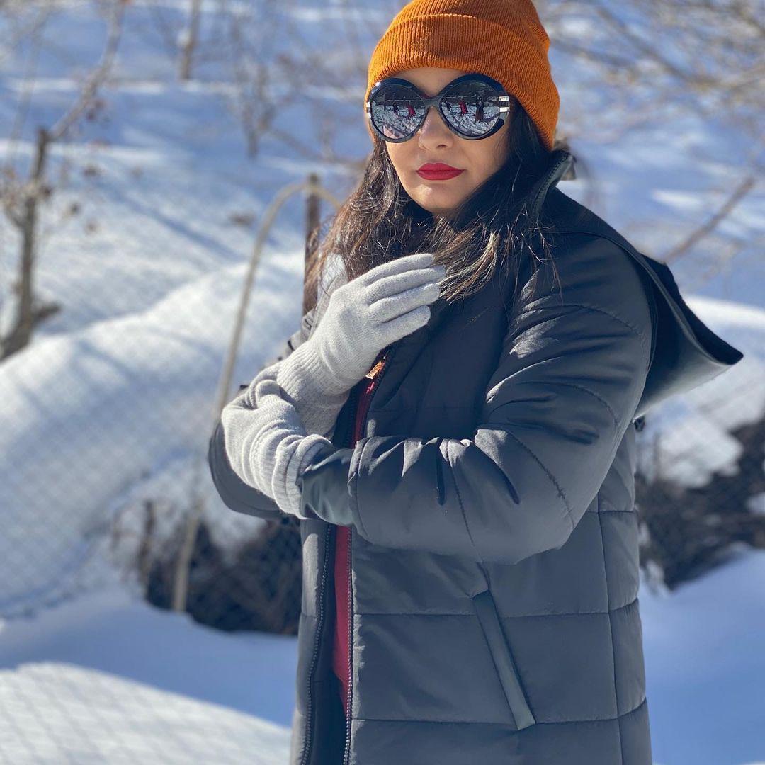 لیندا کیانی بازیگر سینما و تلویزیون ایرانی درحالی که حسابی شال و کلاه کرده است برای فراراز آلودگی تهران به دل طبیعت برفی پناه برد.