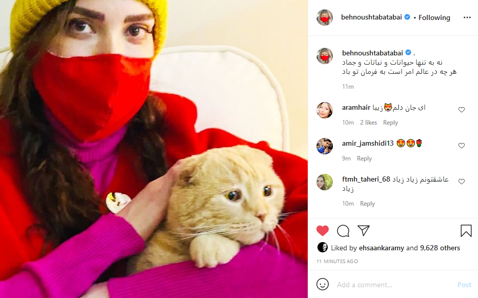 بهنوش طباطبایی که از حامیان حقوق حیوانات است در شرح عکسی که منتشر کرده است اینطور نوشت: