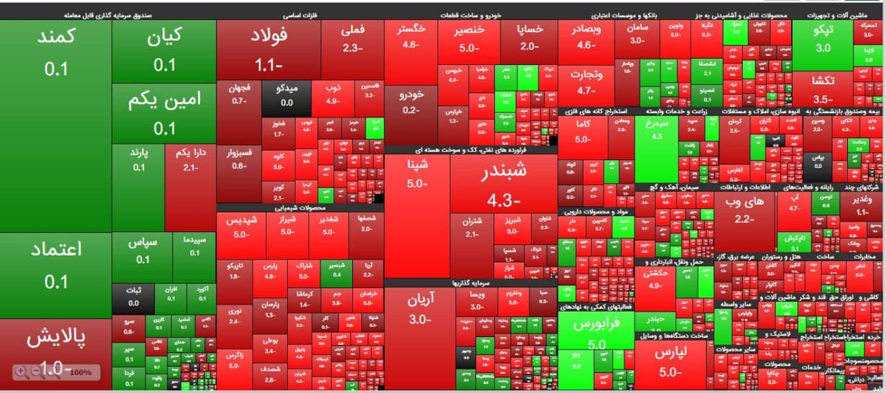 نمادهای پارس، شپدیس، فملی و جم بیشترین تاثیر را در افت شاخص کل داشتند.