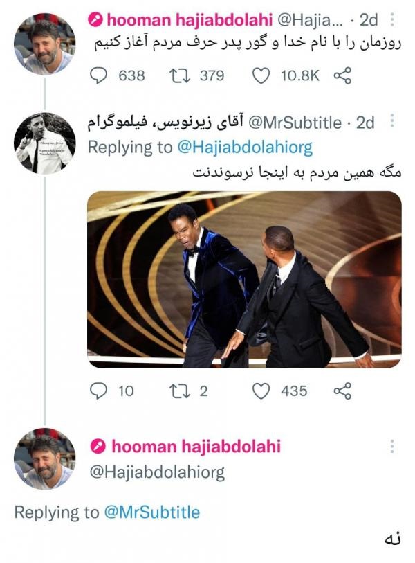 حرف بیجای هومن حاجی عبدللهی در توییتر مردم را خشمگین کرد!/ عکس
