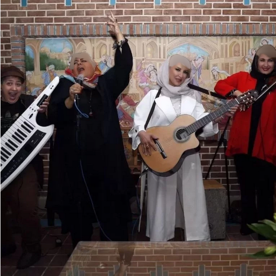 عکسی از مرجانه گلچین در کنار شهره لرستانی، فاطمه گودرزی و رابعه اسکویی در حال ساز و آواز در فضای مجازی منتشر شده است.
