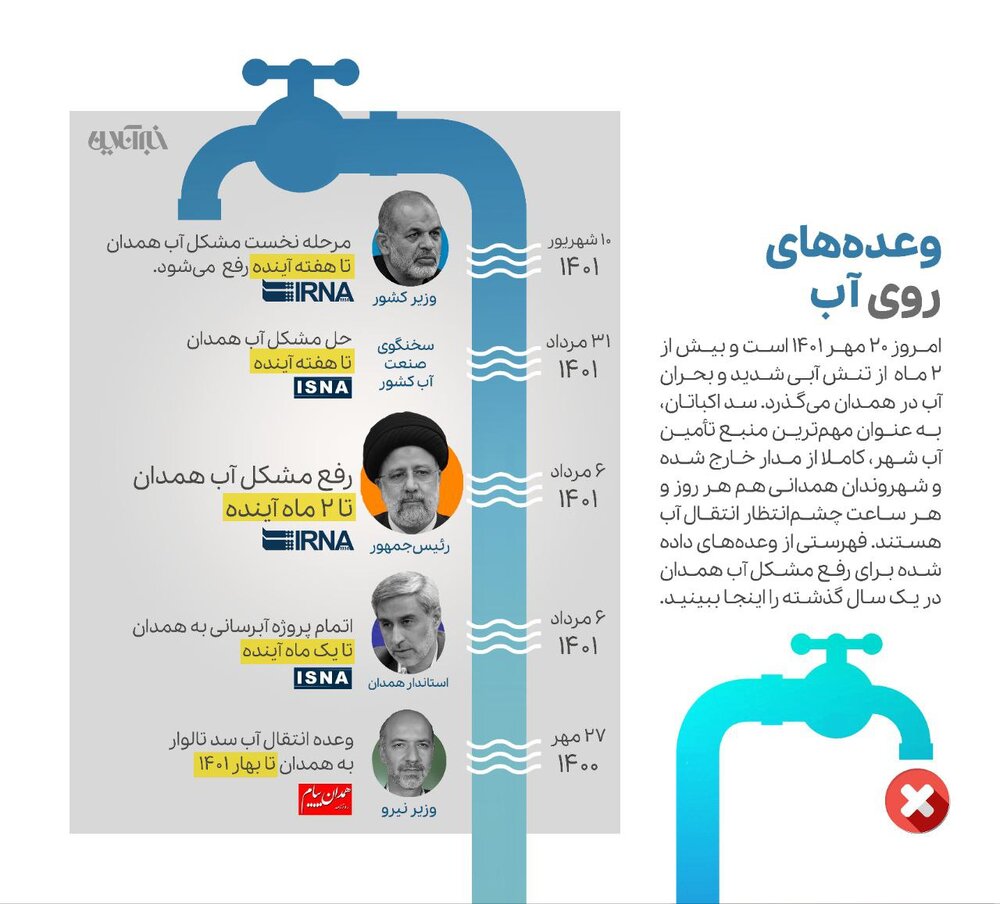 اینفوگرافیک | وعده‌های روی آب/ قول‌های محقق نشده دولت برای رفع مشکل آب همدان