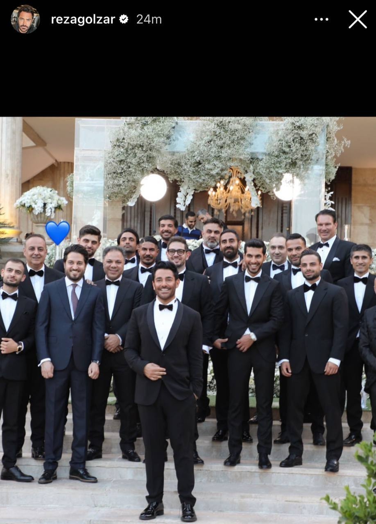 تصویر جدیدی از عروسی محمدرضا گلزار با دوستانش در عروسی منتشر شده هست که همگی با یک تم لباس حضور دارند.