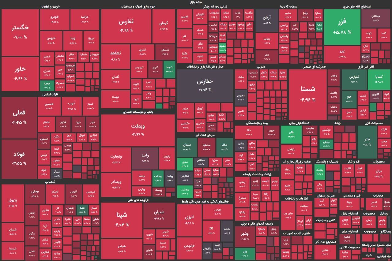 شاخص کل هم وزن نیز در پایان معاملات امروز ریزش سنگین ۳.۴۸ درصدی را تجربه کرد.