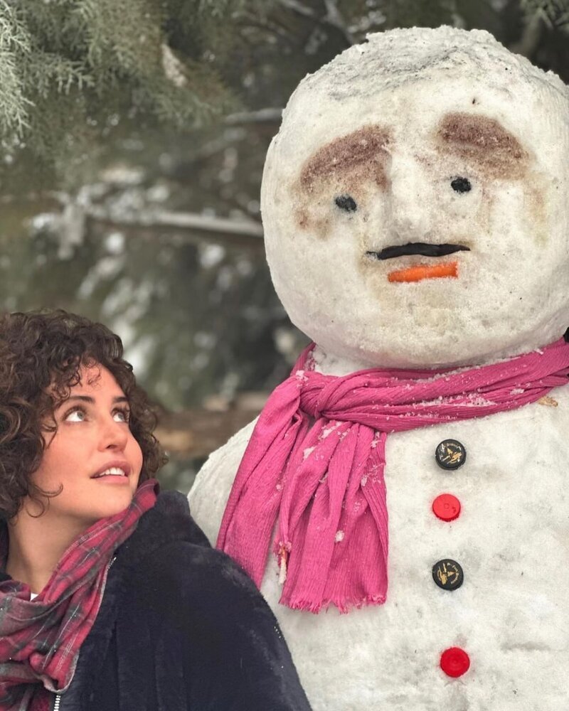 جنجال تیپ  زیبای الناز شاکردوست با آدم‌برفی  عکس