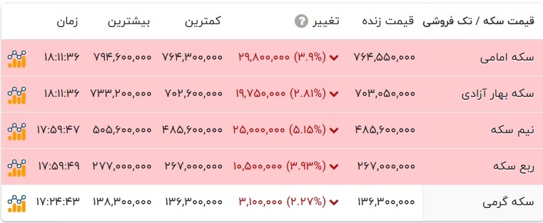قیمت طلا و انواع سکه را در جدول زیر مشاهده می‌کنید.