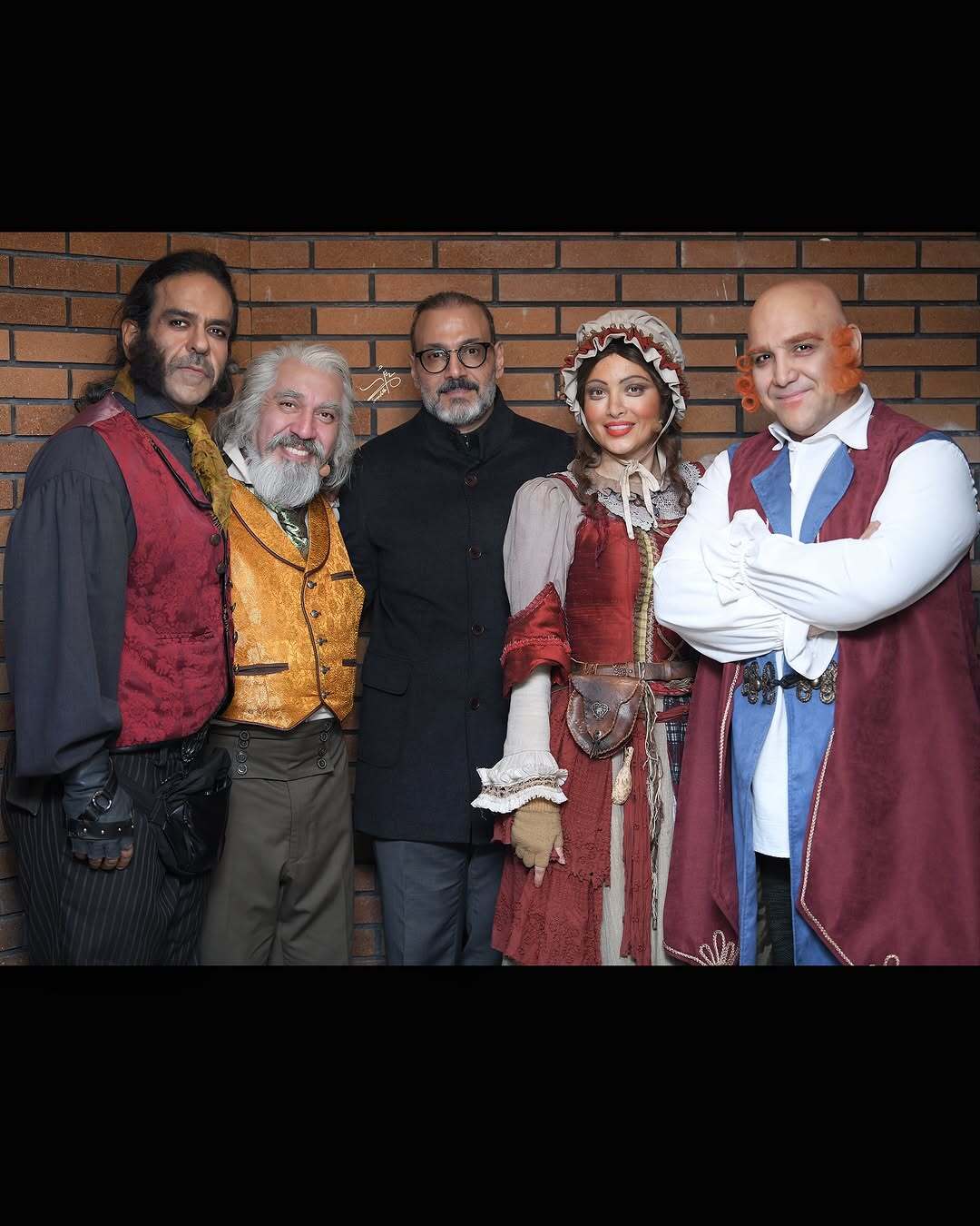 ژست صمیمی علیرضا قربانی با نانسی در پشت صحنه یک نمایش